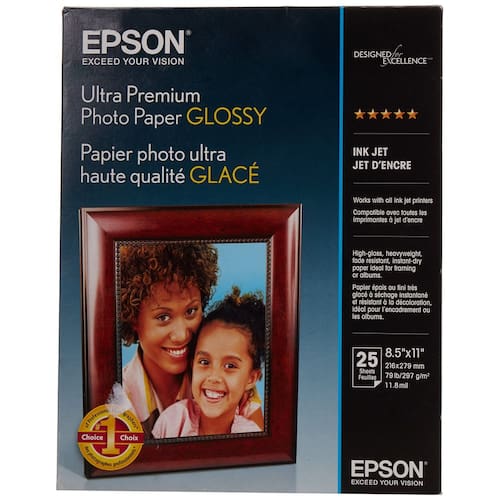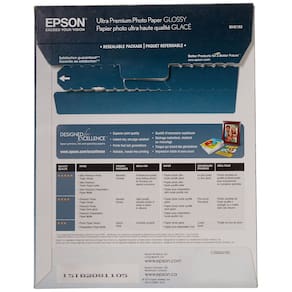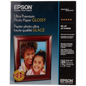 Epson Papel fotográfico ultra premium brilhante, carta, 21 x 28 cm, 25 folhas (S042182), branco - Impressões de qualidade profissional de longa duração - Papel ultra suave, branco brilhante, peso mais pesado - Secagem rápida, superfície resistente a manchas e água - O novo padrão para imagens extraordinárias