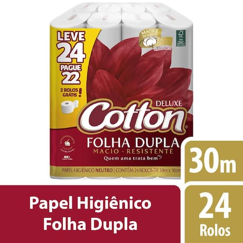 Produzido com 100% celulose virgem, que proporciona maciez semelhante ao algodão; design de folha dupla, garantindo maior absorção e resistência; formato Compacto que otimiza o espaço de armazenamento; excelente relação custo-benefício em uma embalagem promocional com 24 rolos.