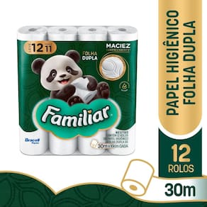 Papel Higiênico Familiar Folha Dupla 30m 12 Rolos