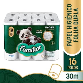 Papel Higiênico Familiar Folha Dupla 30m 16 Rolos