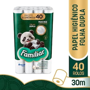 Papel Higiênico Familiar Folha Dupla 30m 40 Rolos