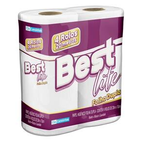 Papel Higiênico Folha Dupla Best Lite 4 Rol 20mts Fd C/24 Papel Higiênico Folha Dupla Best Lite 4 Rolos de 20m O papel Higiênico Best Lite oferece maciez e resistência na medida certa, garantindo conforto e praticidade no dia a dia. Com rolos de 20 metros cada, é ideal para residências, escritórios e estabelecimentos comerciais que buscam qualidade com ótimo custo-benefício. Características do Produto: