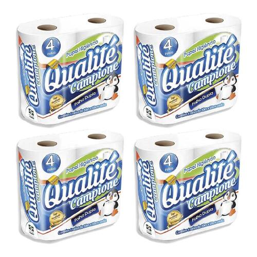 Papel higiênico folha dupla qualité 30m 4x4 16 rolos Papel higienico 4x30m folha dupla qualite 4 pacotes total de 16 rolos. O papel higiênico folha dupla qualite oferece maciez e qualidade superior. Desenvolvido com dupla camada de seda para proporcionar higiene eficaz. Ideal para o cuidado da família, com toque suave e folhas duplas para a higiene íntima. Composto por 100% de fibras celulosas mistas. Deve ser conservado em local seco. Não perecível. Características: rolos com 10cm de altura e 30m de comprimento. Embalagem: 4 pacotes contém 4 rolos cada, totalizando 16 rolos. Marca: Não Informado