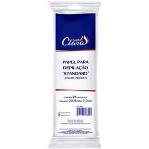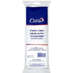 Papel para depilação falso tecido 25 unidades santa clara Benefícios: Ideal para uso com cera quente natural, egípcia ou roll-on Produto hipoalergênico Produto extremamente higiênico Para ou doméstico Produto áspero e mais resistente Produto não perecível Validade indeterminada Composto por: falso tecido em fibra natural Modo de uso: Faça a limpeza da área a ser depilada, aplicar a cera sobre a pele e em seguida utilizar o papel para depilação santa clara para a retirada dos pelos, retire no sentido oposto do pelo Contém: 01 pacote papel para depilação falso tecido com 25 unidades santa clara Ean: 7897169208001