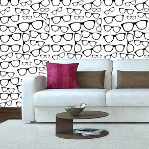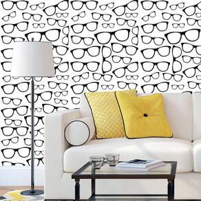 Papel Parede Adesivo Branco Desenho Óculos Preto Decorativo