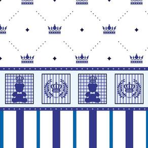Papel Parede Adesivo Urso Coroa Azul E Listra Infantil Bebe
