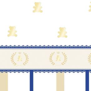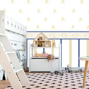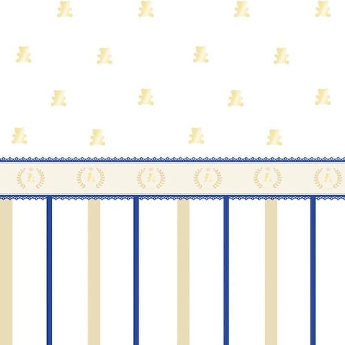 Papel Parede Adesivo Urso E Faixa Dourada Com Azul Infantil