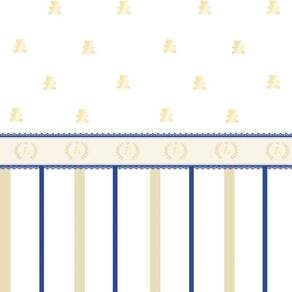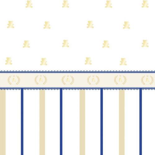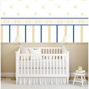 Papel Parede Adesivo Urso E Faixa Dourada Com Azul Infantil