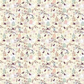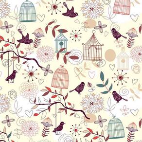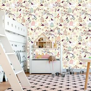 Papel Parede Amarelo Gaiolas Pássaros Autocolante Decorativo