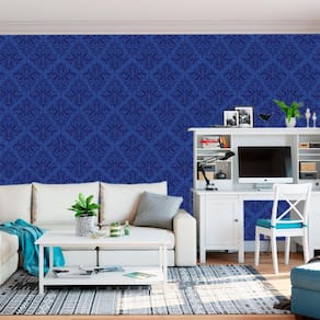 Papel parede arabesco azul escuro adesivo quarto casal sala