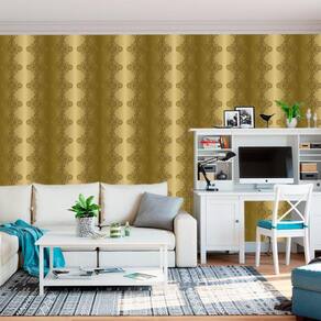 Papel parede arabesco dourado sala quarto adesivo lavavel