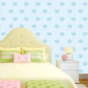 Papel parede azul claro e coroa azul autocolante sala quarto