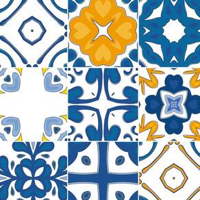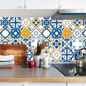 Papel parede azulejo azul laranja adesivo cozinha lavatório