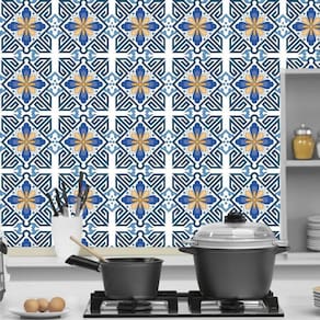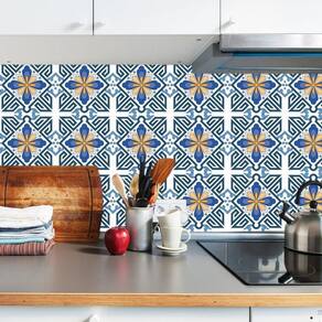Papel parede azulejo preto e azul cozinha lavatório banheiro