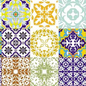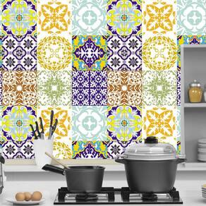 Papel parede azulejo tons amarelo e azul cozinha lavatório