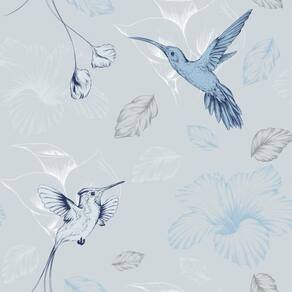 Papel Parede Beija Flor Azul Adesivo Decorativo Sala Quarto