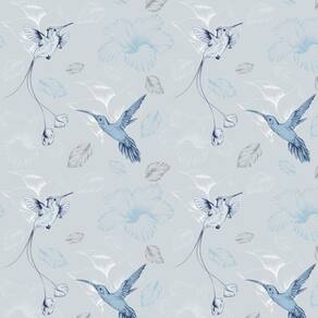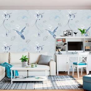 Papel Parede Beija Flor Azul Adesivo Decorativo Sala Quarto