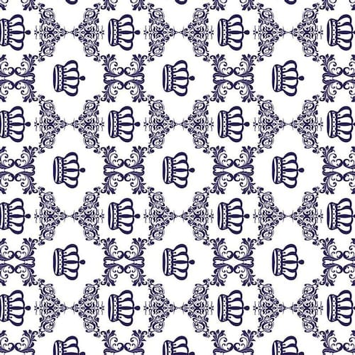 Papel Parede Branco Com Coroas Azul Escuro Adesivo Infantil