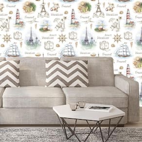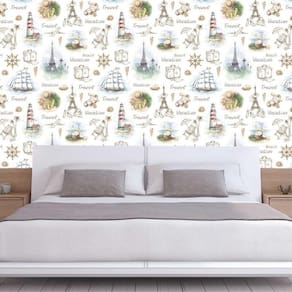 Papel parede caravelas avião mala farol viagem torre eiffel