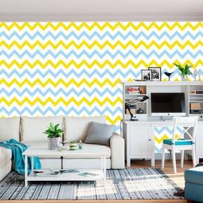 Papel Parede Chevron Amarelo Branco Azul Decorativo Adesivo