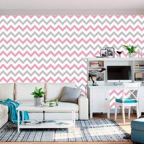 Papel Parede Chevron Rosa Branco E Cinza Adesivo Decorativo