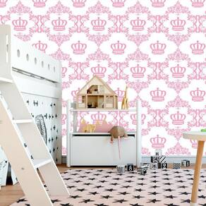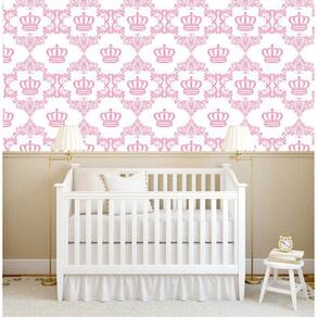 Papel Parede Coroa Rosa Claro Fundo Branco Adesivo Infantil