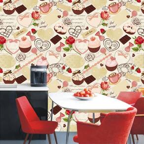 Papel parede cupcke café corações chocolate pirulito adesivo