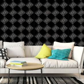 Papel parede desenho metalizado fundo preto adesivo lavavel