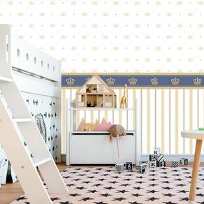 Papel Parede Faixa Azul E Listrado Dourado Adesivo Infantil