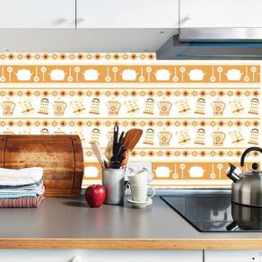 Papel parede faixa laranja utensílios de cozinha autocolante