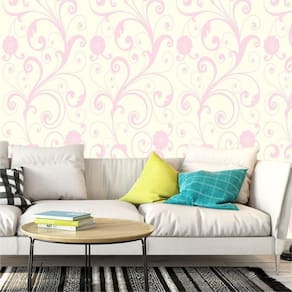 Papel parede flor rosa fundo amarelo claro adesivo lavavel