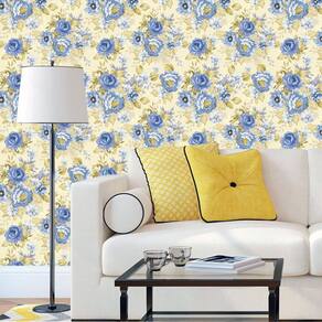 Papel Parede Floral Flores Azul E Amarelo Quarto Casal Sala