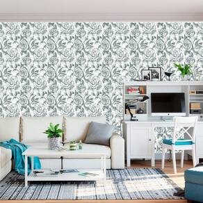 Papel Parede Floral Flores Verde Pintura Lapis Adesivo Sala
