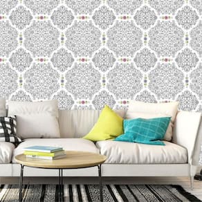 Papel parede flores arabesco linhas preta adesivo lavavel