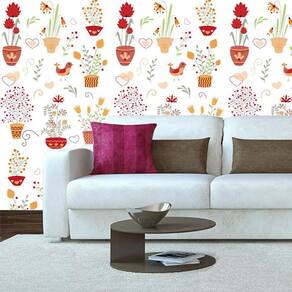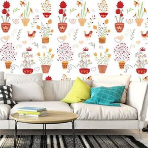 Papel parede flores coloridas no vaso autocolante decorativo