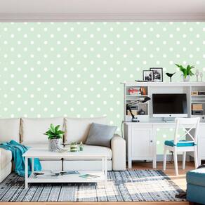 Papel parede fundo verde claro e circulos branco poa adesivo