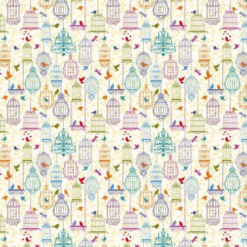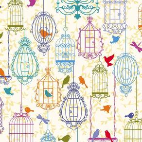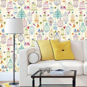Papel Parede Gaiolas Coloridas Passarinho Adesivo Decorativo