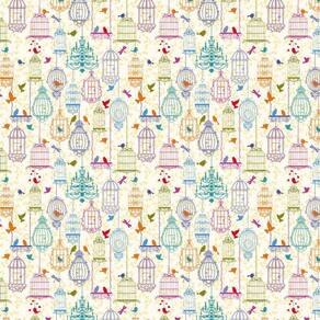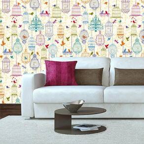 Papel Parede Gaiolas Coloridas Passarinho Adesivo Decorativo