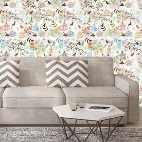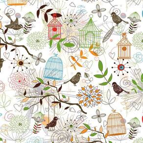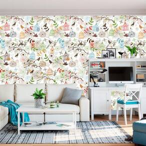 Papel Parede Gaiolas E Pássaros Coloridos Decorativo Adesivo