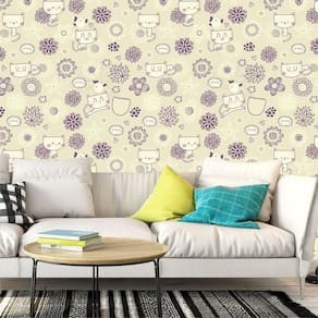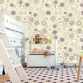 Papel Parede Gatinha E Flores Decorativo Adesivo Sala Quarto