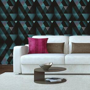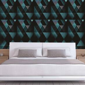 Papel parede geométrico preto e triângulos verde autocolante