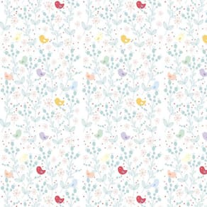 Papel Parede Jardim E Pássaros Coloridos Decorativo Adesivo