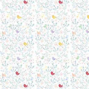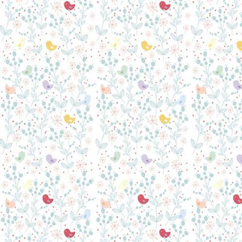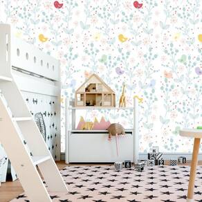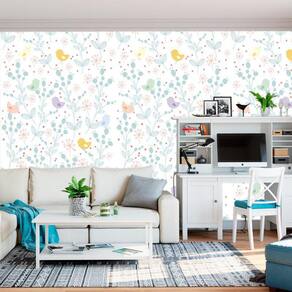 Papel Parede Jardim E Pássaros Coloridos Decorativo Adesivo