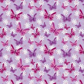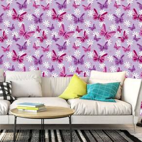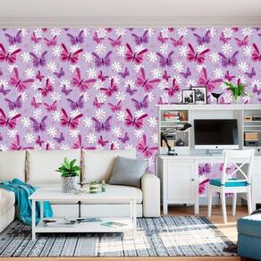 Papel Parede Lilas Escuro Com Borboletas Vermelhas E Lilas