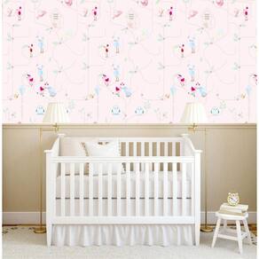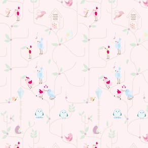 Papel Parede Pássaros Cantando Fundo Rosa Adesivo Infantil