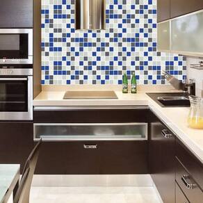 Papel parede pastilha azul e cinza adesivo cozinha banheiro