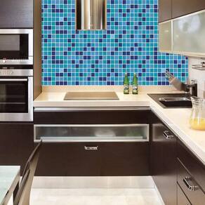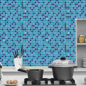 Papel parede pastilha azul e preto adesivo banheiro cozinha