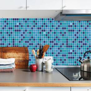 Papel parede pastilha azul e preto adesivo banheiro cozinha