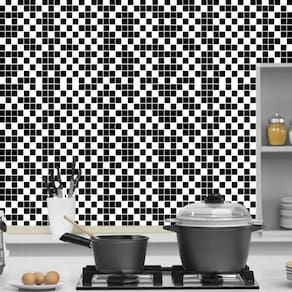 Papel parede pastilha preto branco adesivo cozinha banheiro