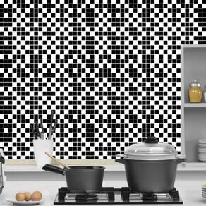 Papel parede pastilha preto branco adesivo cozinha banheiro